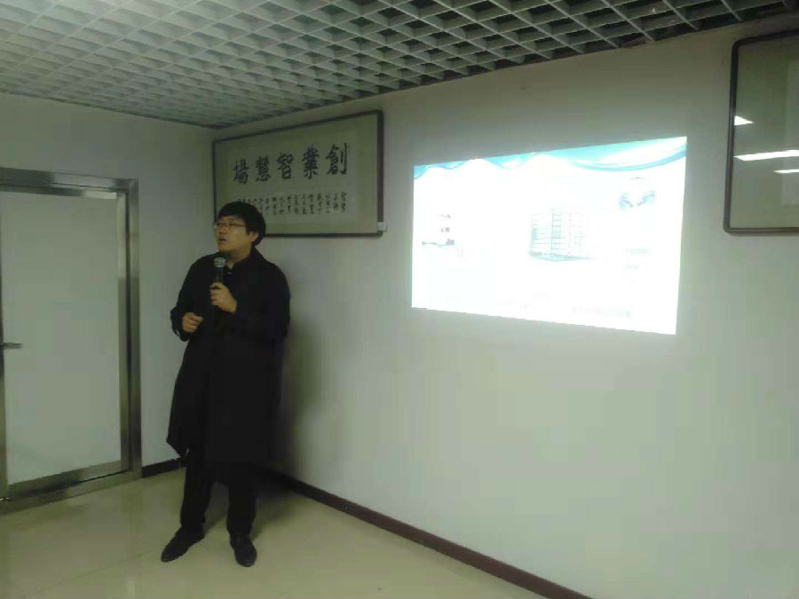 鞍山奇典光觸媒高科技有限公司張洛維總經(jīng)理在向家人介紹自己的企業(yè)