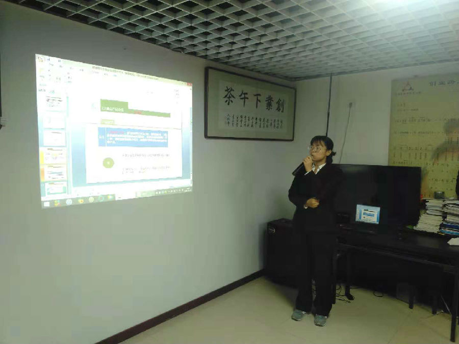 鞍山晞碩網(wǎng)絡(luò)科技有限公司張婉桐總經(jīng)理在向家人介紹自己的企業(yè)